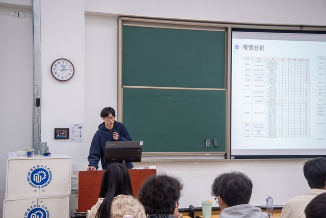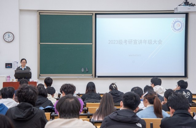 就业指导老师陈新莲首先围绕往届考研去向基本情况进行了系统介绍,涵盖报考人数、院校去向等关键数据。她提醒学生要主动关注考研动态,广泛收集信息,尽早明确目标与规划。在谈及备考重点时,她特别指出,除了保证初试成绩,复试环节也需给予充分重视,科研经历与专业英语能力是两项关键因素。学生应逐步建立起对科研项目的批判性思维和专业逻辑思考能力,并加深对专业英语词汇的掌握。